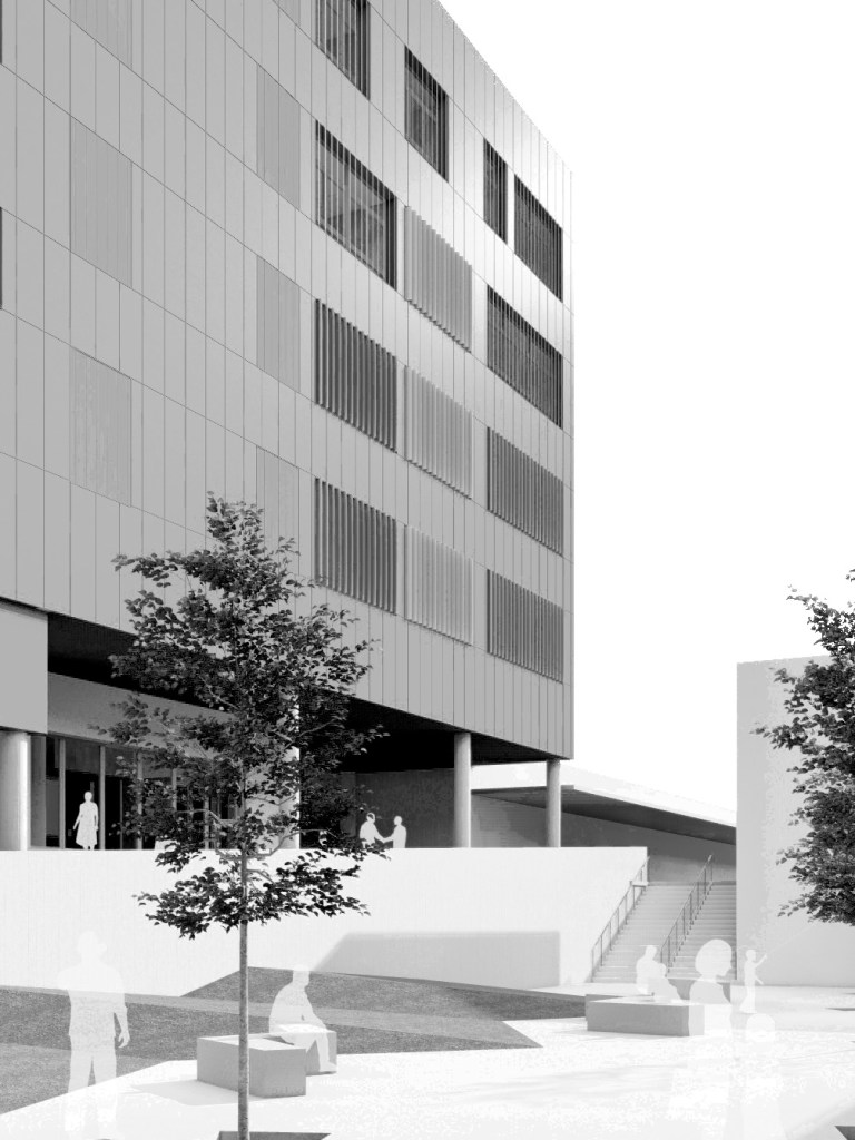 Nuevo edificio para Educación Secundaria en una zona libre de la parcela de un centro existente cuyas dimensiones obligan a la construcción en altura y un estudio detallado de los medios auxiliares para su ejecución.