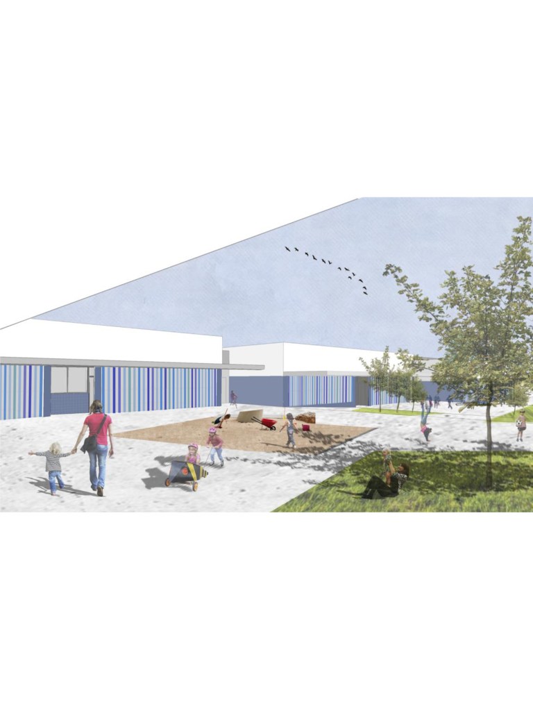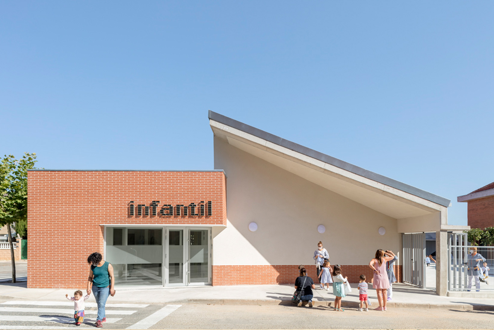 Con un presupuesto ajustado se ejecuta un nuevo aulario de infantil + servicios comunes en la parcela donde se ubica el antiguo edificio de primaria que continua en servicio durante la obra.