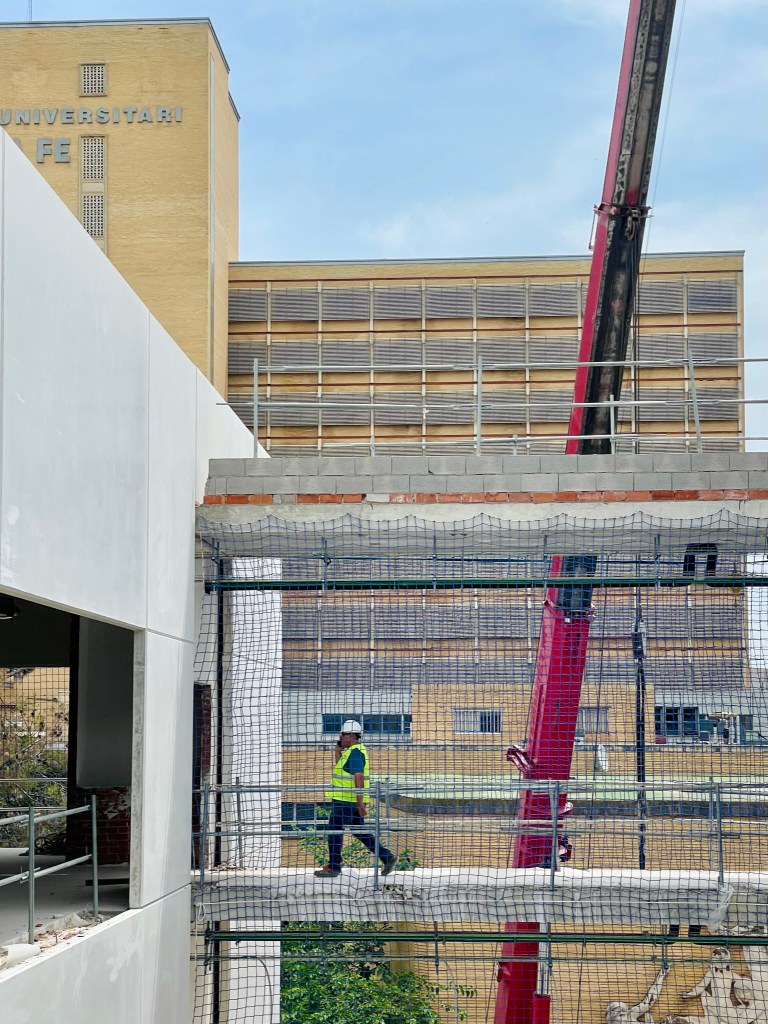 Ampliación y reforma del segundo hospital más grande de la Comunidad Valenciana mediante la concatenación de 3 fases sobre la parcela de la antigua Escuela Universitaria de Ingenieros Agrónomos incluyendo la rehabilitación del edificio obra del arquitecto Fernando Moreno Barberá.