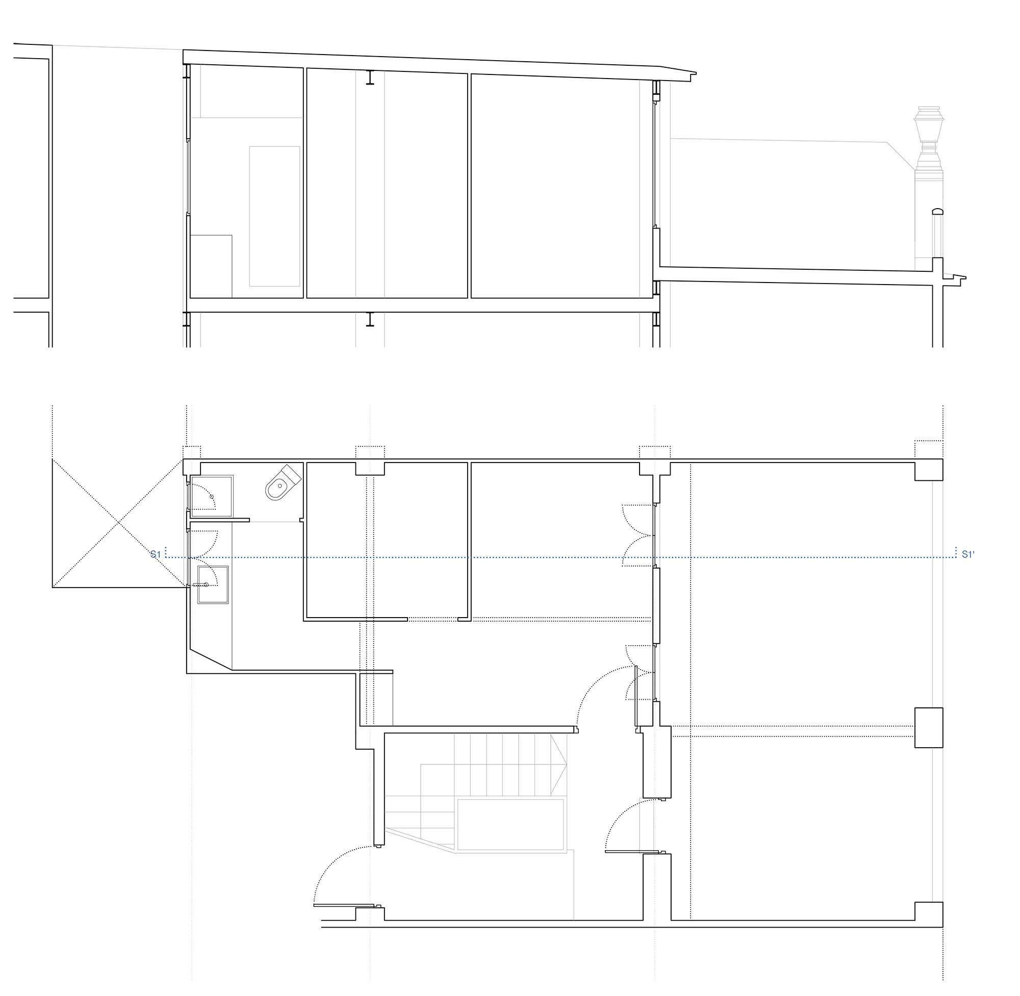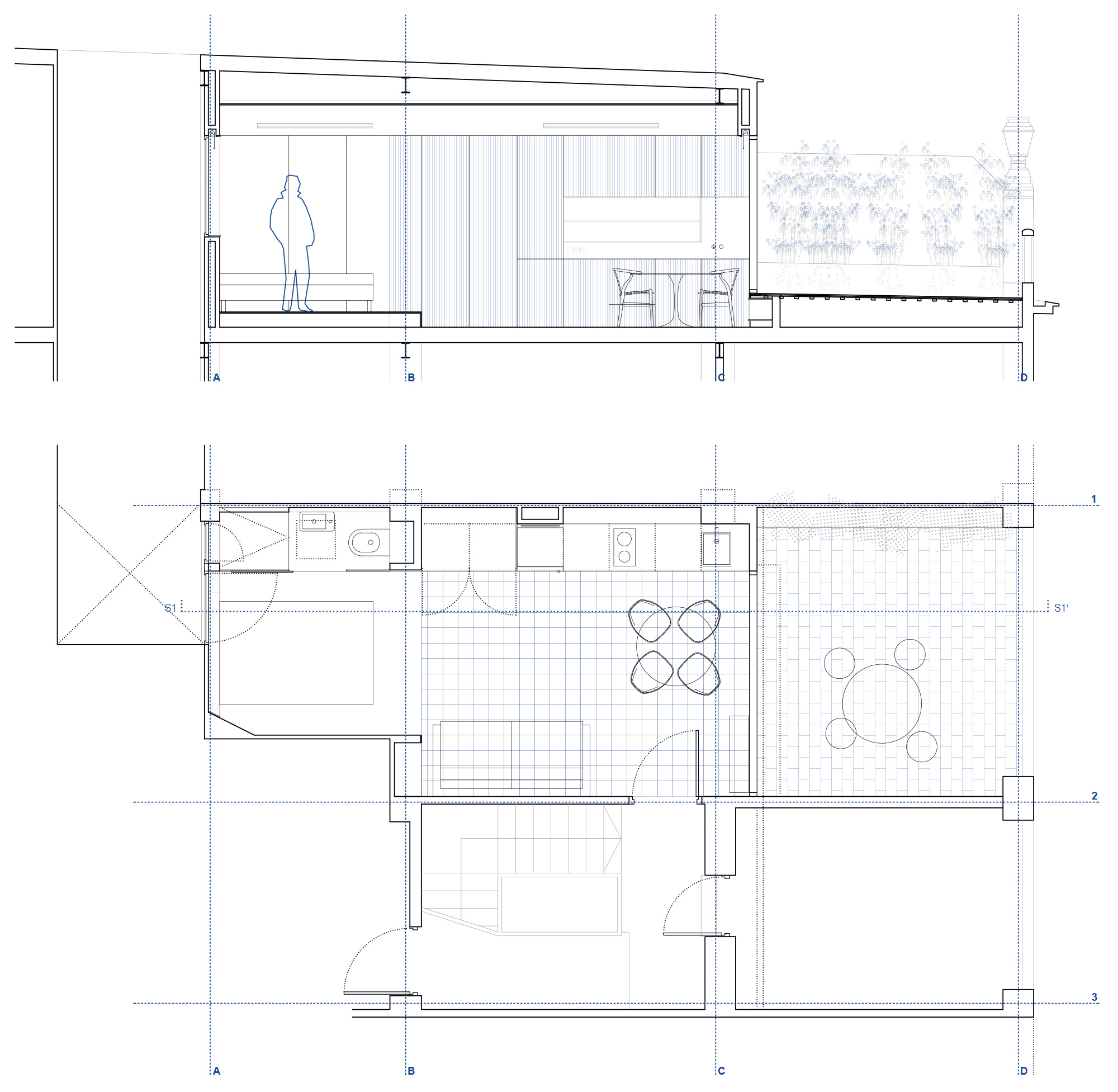 Para ello, la reforma construye los espacios de servicio en una densa franja a lo largo de la medianera, liberando el espacio principal que se expande al exterior gracias al gran ventanal a la terraza.