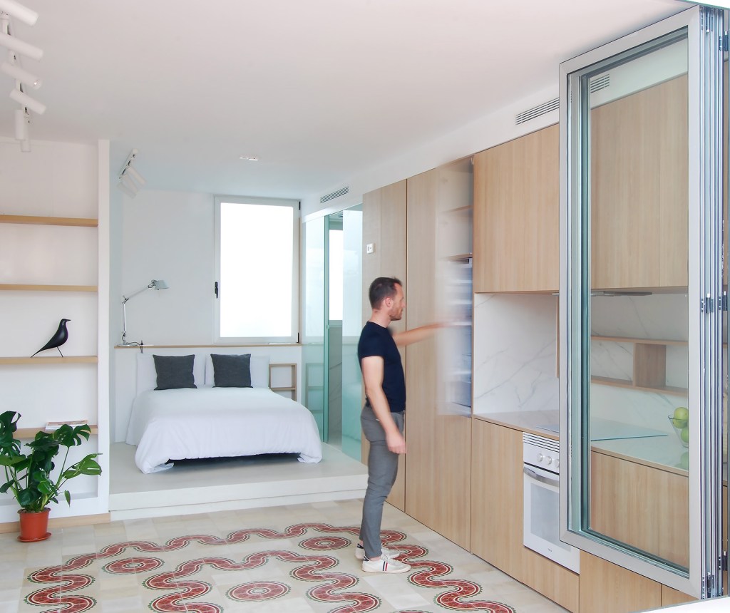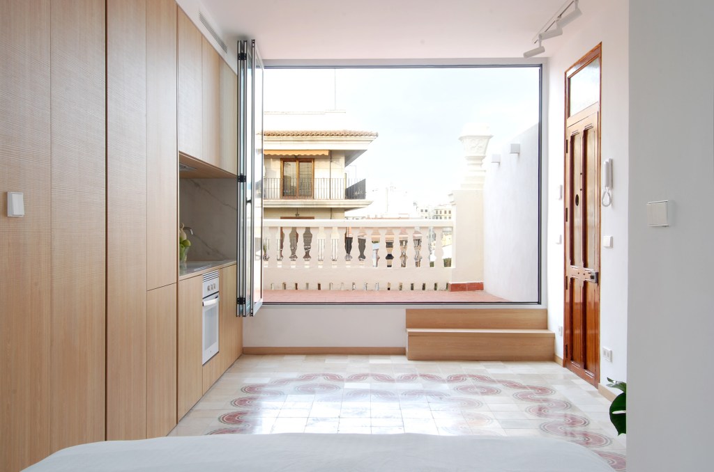 Julio quería transformar los 24 m2 de esta vivienda de porteria en una privilegiada atalaya desde la que disfrutar de las vistas del casco histórico de Valencia.